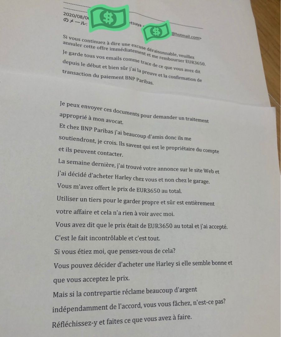 だって、購入のための個人間売買交渉、フランス語のメールで計97通だから…。